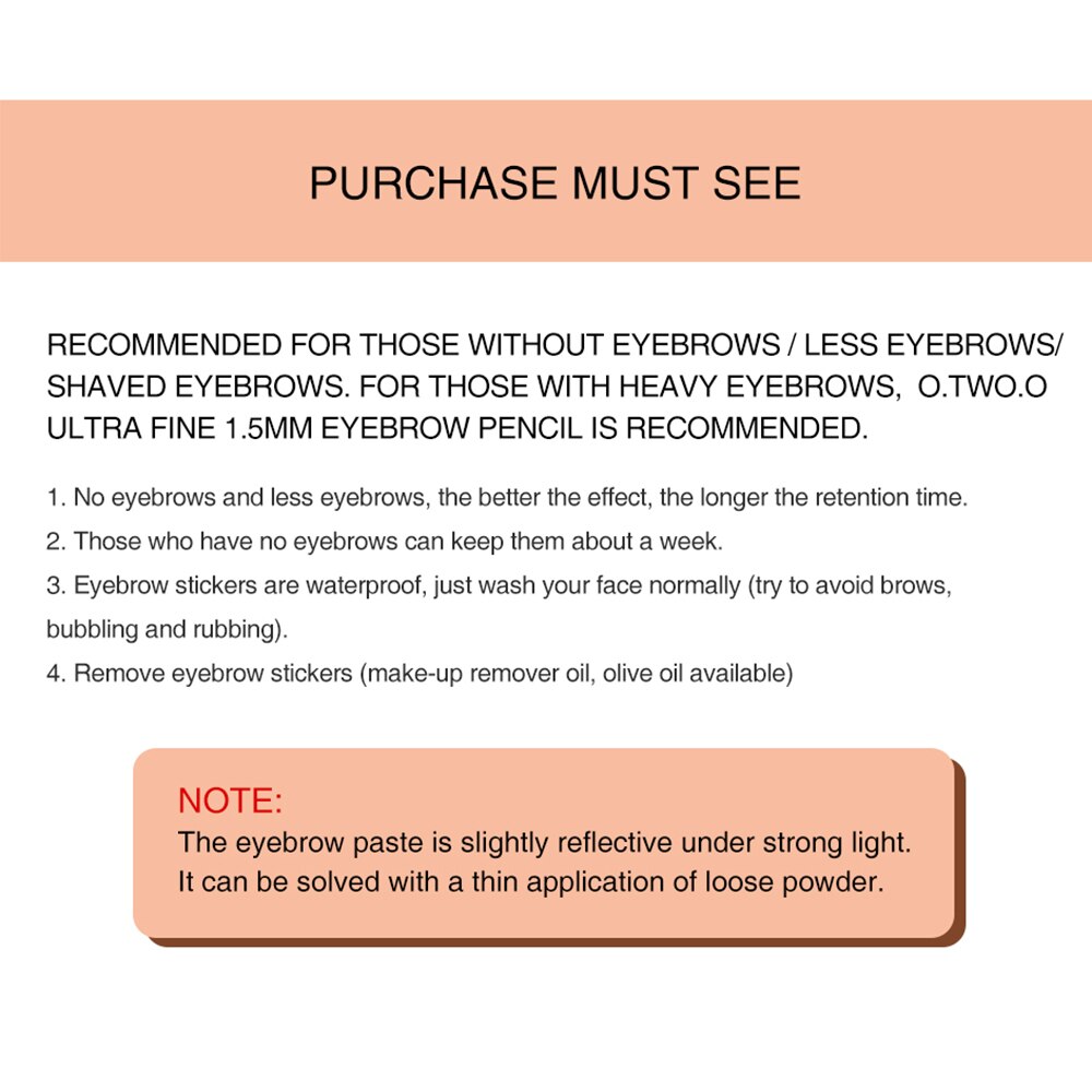 Estas sobrancelhas são adesivos de sobrancelhas à base de água, basta simplesmente mergulhar o par de sobrancelhas na água para usar instantaneamente, criando sobrancelhas 4D extremamente reais. Nenhuma habilidade de maquiagem profissional se faz necessária! E, uma vez coladas na pele, tornam-se impermeáveis à prova de manchas e com resultado duradouro de até 7 dias!