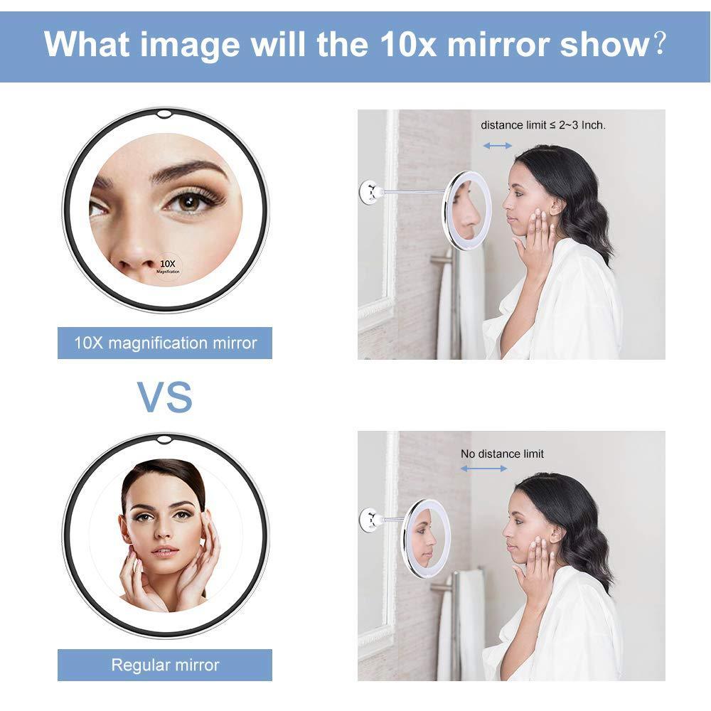 - MAGNIFICAÇÃO PODEROSA 10X: A ampliação de 10X deste espelho permite que você complete suas tarefas minuciosamente. Descubra suas manchas na pele, coloque suas lentes de contato,